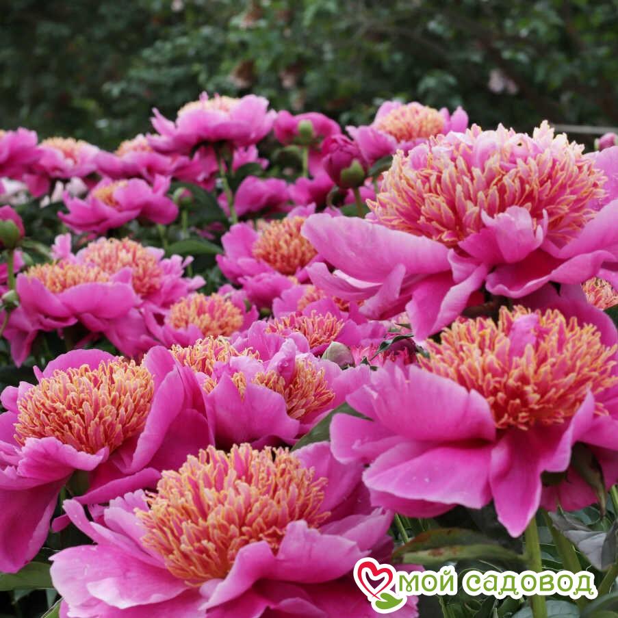 Цветок диаметром 16 см, двухрядный, чашевидный, ярко-розово-сиреневый. Стаминодии такого же цвета с золотистым краем, ровные, загнуты внутрь, образуют ровный шар. Аромат восточный. Куст компактный, высотой 90 см, стебли тонкие, но прочные. Поздний. Место посадки Для посадки пионов понадобится защищенное от ветров место с хорошей освещенностью. Сорта светлой окраски, а также пионы с простыми и полумахровыми цветками можно посадить на частично затеняемом участке, это продлит цветение и защитит цветы от выгорания. Почва для посадки Залог успешного цветения пиона в будущем — это подготовка почвы! 1. Подготовка ямы — 70*70 см на скудных песчанистых и торфянистых почвах — 50*50 см на плодородных, окультуренных почвах. ХРАНЕНИЕ ДО ПОСАДКИ: После получения посылки, рекомендуем вскрыть пакет и осмотреть корневище. Почки должны быть плотные и розового цвета. Так же уделите внимание самому корневищу, все сомнительные, потемневшие, сморщенные части удалите, а места среза обработайте зеленкой или залой. Если почки еще не тронулись в рост, а высаживать в открытый почву рано, советуем Вам хранить корневище в холодильнике, обязательно оставляя его в пакете с торфяной смесью или в коробке под снегом. Если почки успели раскрыться это не критично, сохранить до посадки их так же возможно, высадите корень пиона в большой просторный горшок или в любую другую ёмкость.